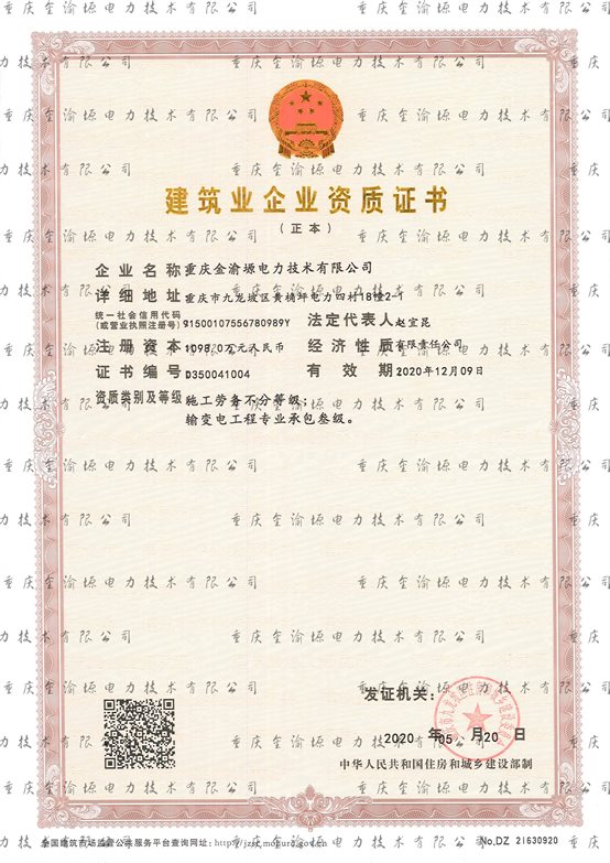 建筑業(yè)資質(zhì)—專業(yè)承包輸變電工程叁級(正本)